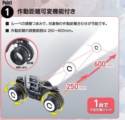 「作動距離可変」「左右の目の視力差ピント調整」「超軽量」