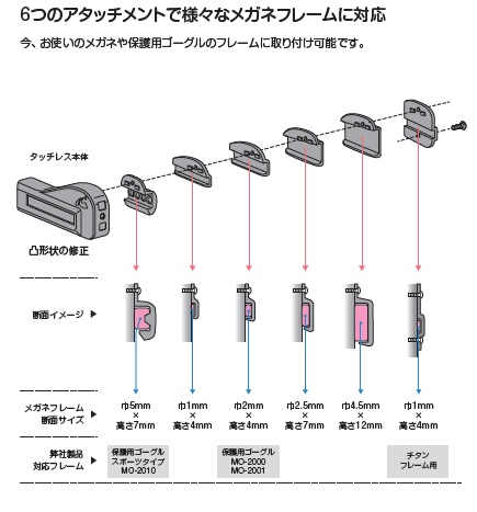 お使いのメガネやゴーグルにワンタッチで簡単に取り付けが可能です。